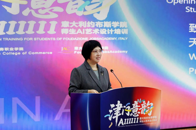 炒股配资平台大全首选加杠网天津商务职业学院校长黄凤羽教授在开营仪式上致辞
