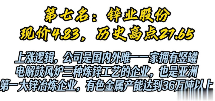 6. 锌业股份(现价3.82,历史高点42.31)