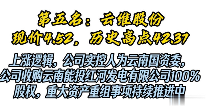 4. 云维股份(现价4.52,历史高点42.31)