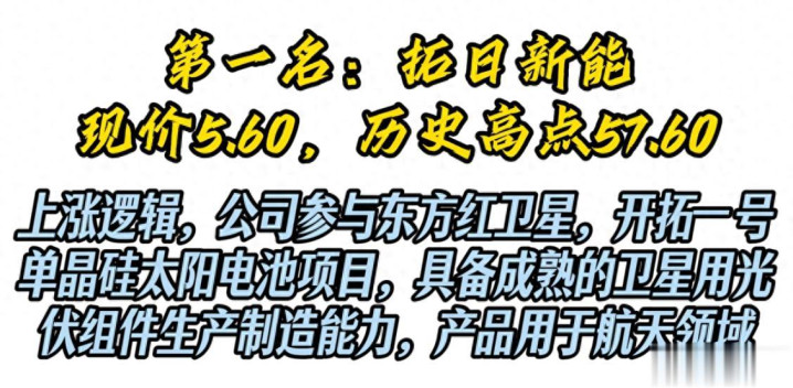 1. 拓日新能(现价3.91,历史高点40.00)
