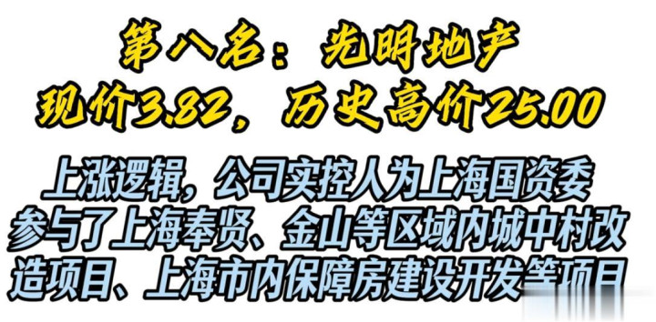 7. 光明地产(现价3.82,历史高价25.00)